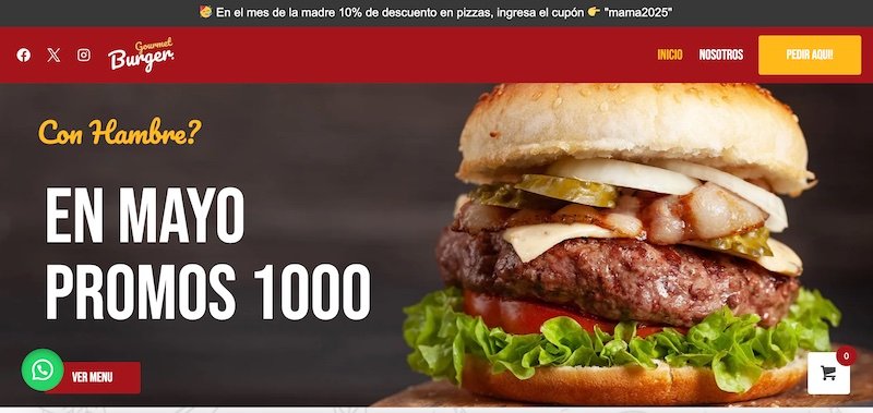 Pedidos on line, sección principal, menu QR, reseñas google, reservas.