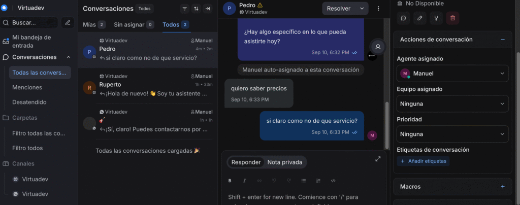 📲 Unificar WhatsApp, Instagram, Facebook y webchat en un solo panel.